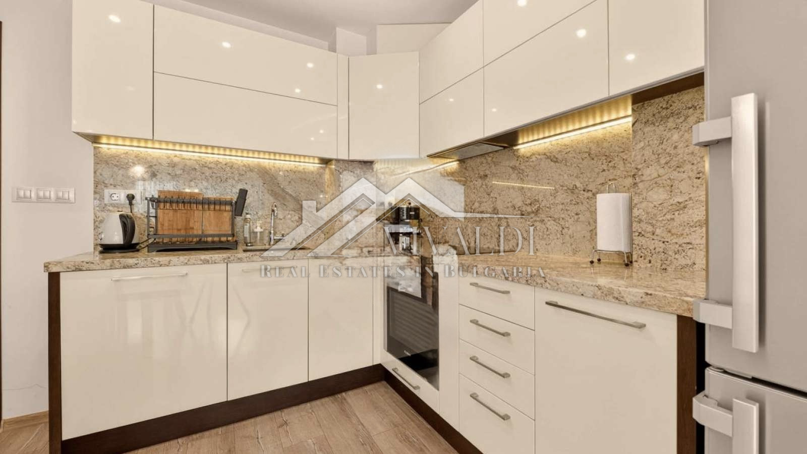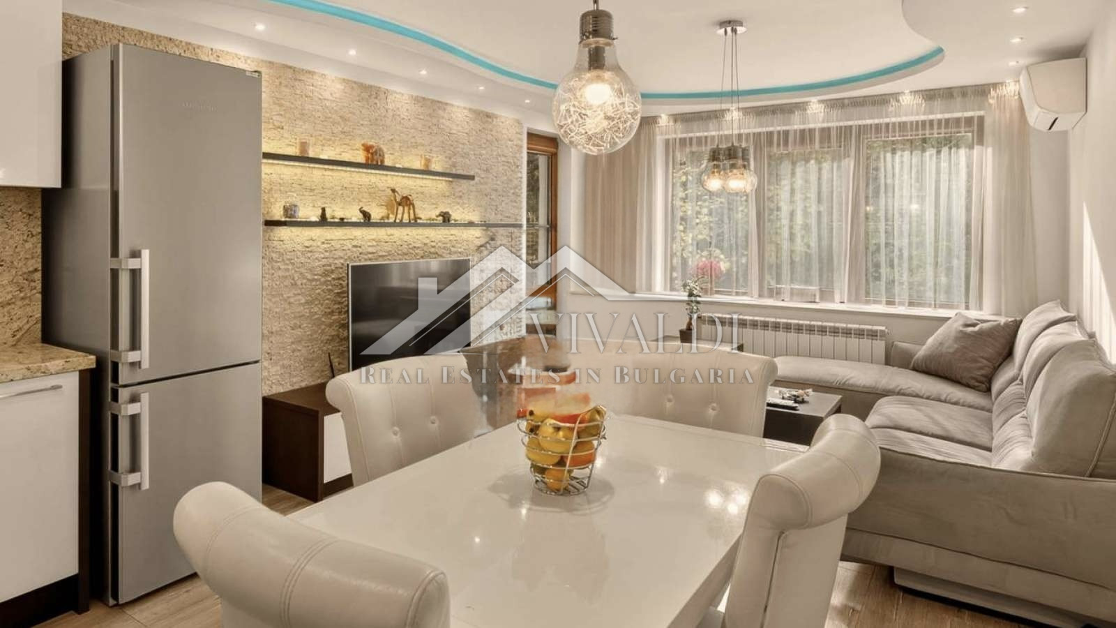 Апартаментът се продава напълно завършен и стилно обзаведен, с висококачествени материали: