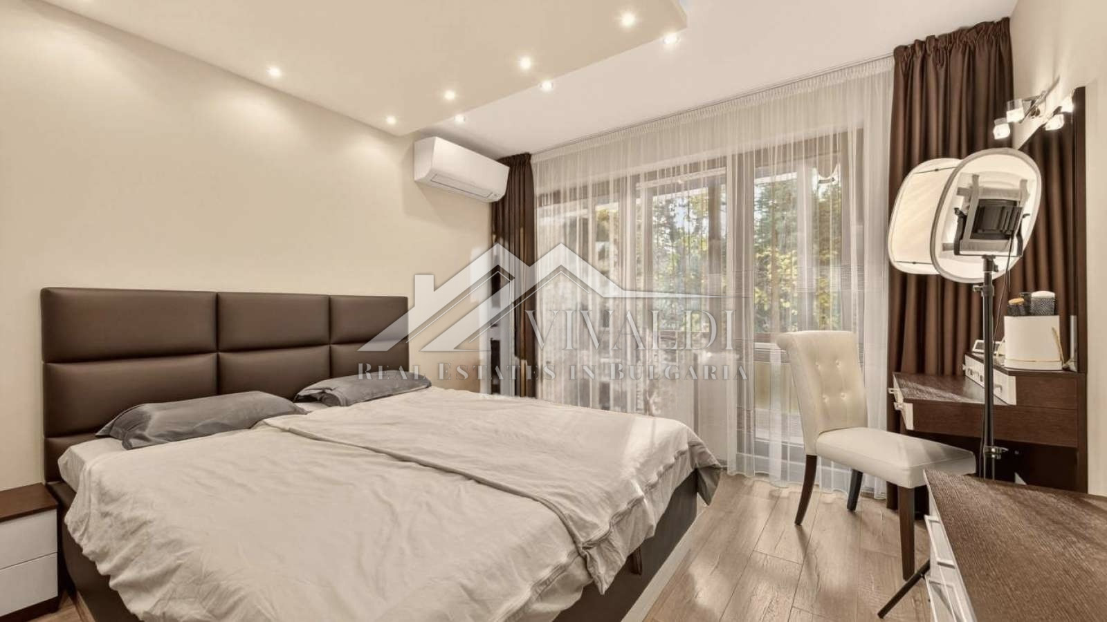 - Дневна и една спалня с излаз на остъклена тераса с троен дървен стъклопакет