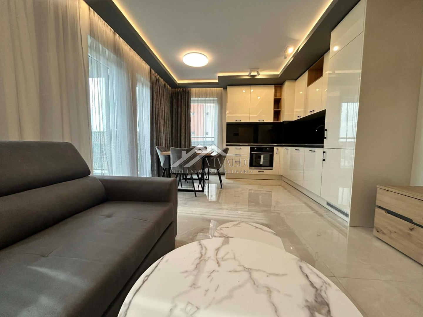 Съвременен и чисто нов двустаен апартамент, напълно готов за живеене. Идеален за първи наематели.