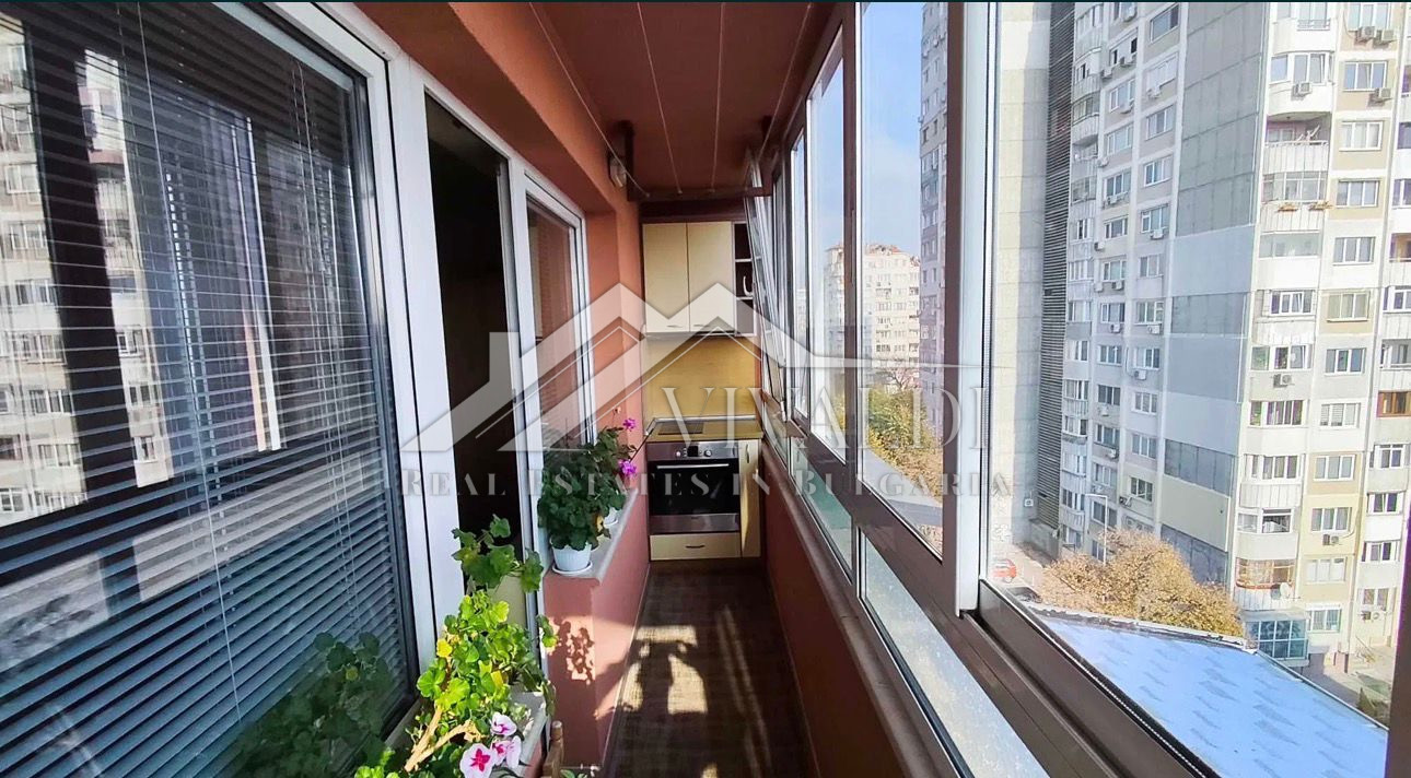 Светъл и уютен апартамент, разположен в удобен жилищен район с добре развита инфраструктура. Жилището е напълно обзаведено и оборудвано с всичко необходимо за комфортно живеене. Апартаментът предлага приятна гледка към града и частична гледка към морето.