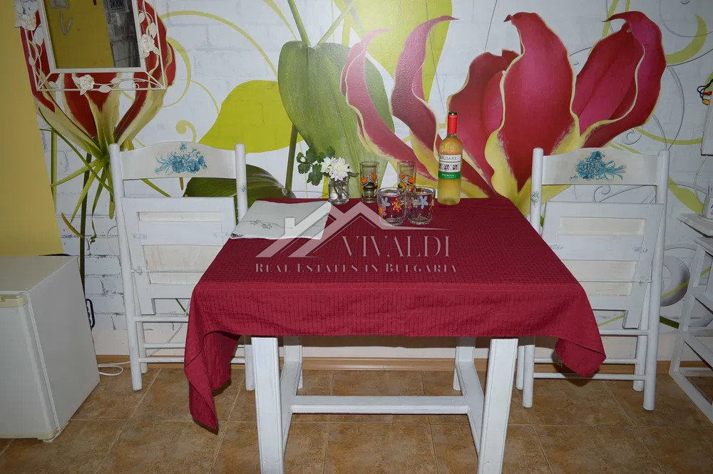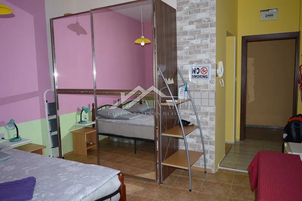 Сдаётся в аренду однокомнатный апартамент, расположенный непосредственно перед входом в Морской сад города Варна, всего в 100 метрах от моря, рядом с Парком Марта. Апартамент находится на партерном этаже в закрытом комплексе с контролируемым доступом.